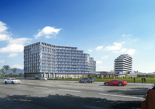 與周邊環(huán)境融合,借助地形與山水景的穿插,打造集商務(wù)中心、購物中心及娛樂中心于一體的世界生活方式中心。