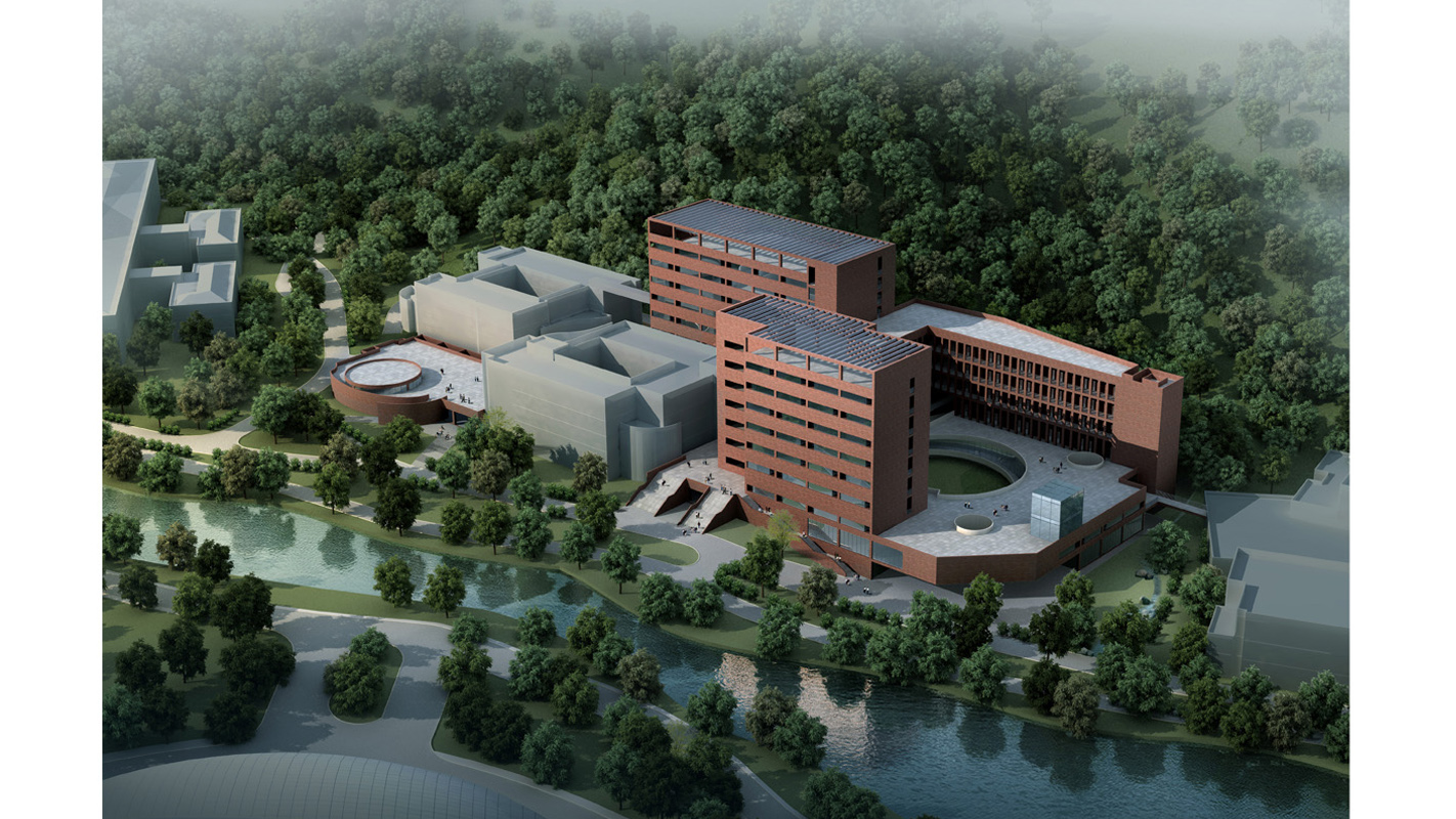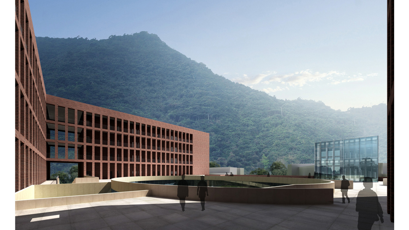 項目位于珠海唐家灣金鳳路北京師范大學(xué)珠海分校內(nèi),學(xué)校依山傍海,環(huán)境優(yōu)美,設(shè)施先進(jìn)。規(guī)劃布置的突出特點(diǎn)是結(jié)合山體在整體布局上成序列,成組團(tuán)布置,充分考慮分期建設(shè)的要求。每個教學(xué)區(qū)域自成一體形成院落空間,同時各個院落之間利用聯(lián)系口、廊橋以及滲透空間取便捷的聯(lián)系,具備開放性和交流性。這種流線關(guān)系同時滿足了教學(xué)功能以分期建設(shè)的雙重要求。與場地內(nèi)山體的結(jié)合有兩種思路,簡而言之就是倚山而建和騎山而建,這兩個方向發(fā)展出兩個截然不同的建筑格局,他們都符合我們對用地的認(rèn)識,卻有著不同的空間體驗。