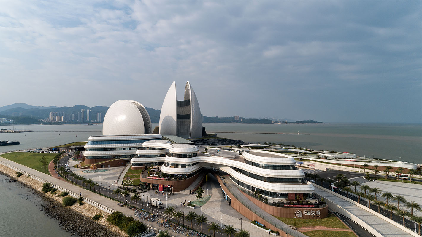 本項目是珠海香洲新月灣規(guī)劃方案中的地標型建筑、珠海城市名片—— 日月貝歌劇院的配套商業(yè)項目,位于珠海野貍島名亭公園北側(cè)填海區(qū),是珠海中心城區(qū)內(nèi)的重要濱水地區(qū),也是珠海情侶路的重要核心節(jié)點,屬于珠海城市地標項目。