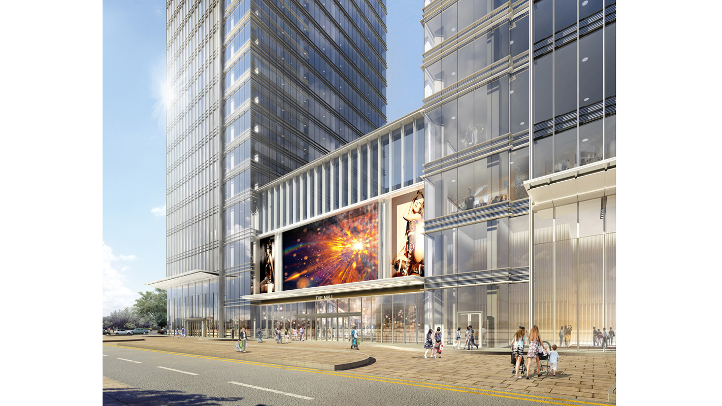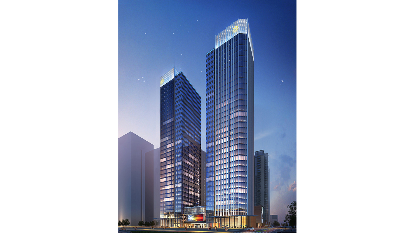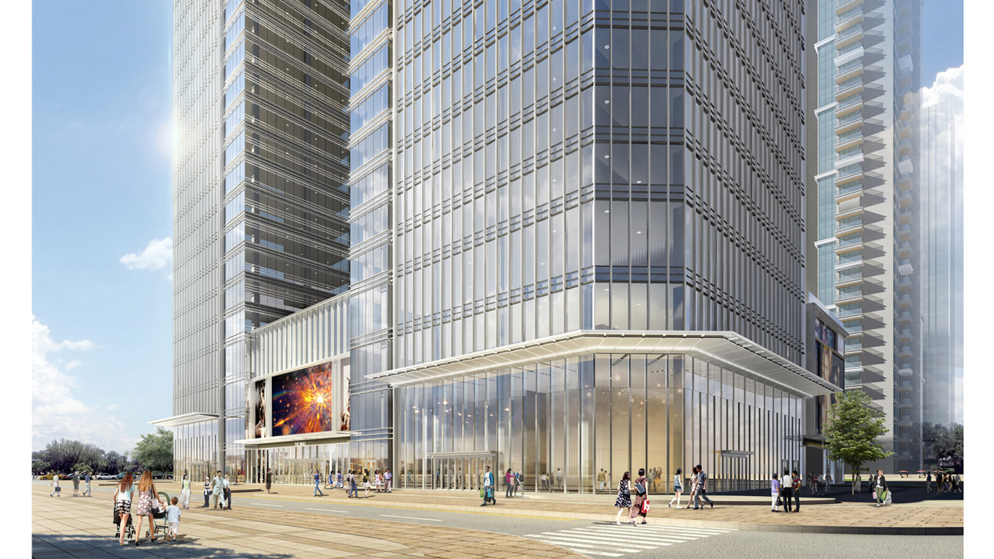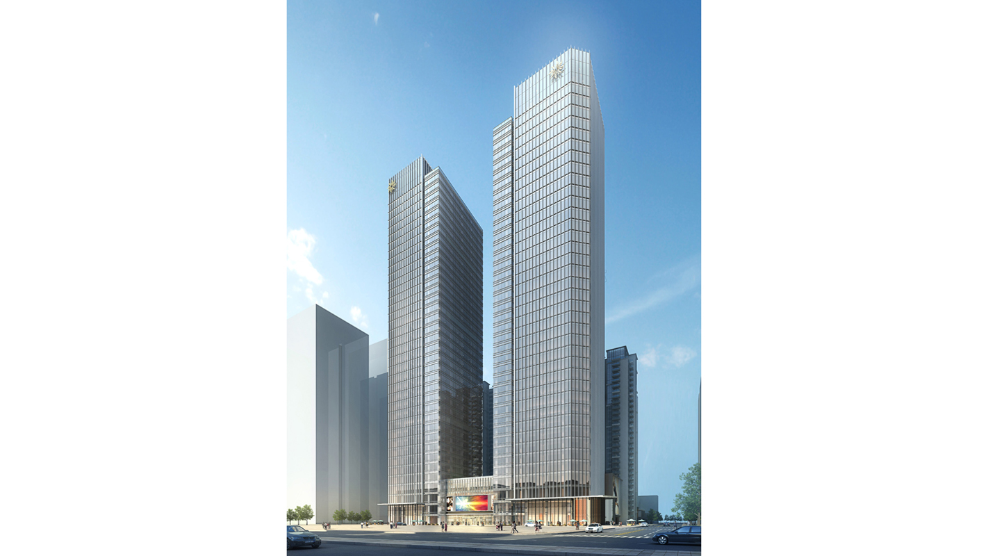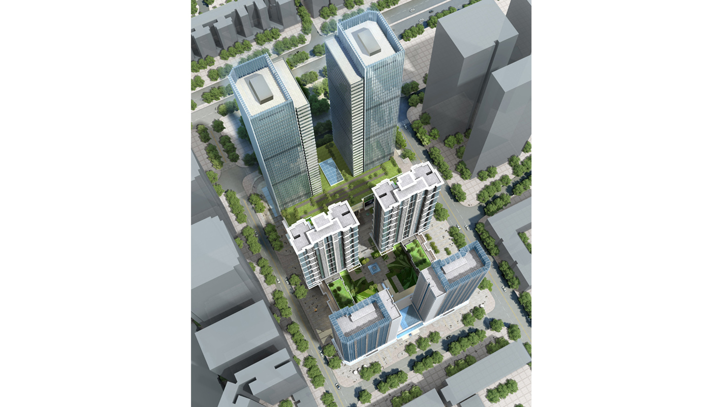 項目定位為市中心區(qū)超甲級寫字樓,集中商業(yè)用地及城中心高檔住宅小區(qū)用地,項目開發(fā)力求達到塑造核心區(qū)域標志建筑景觀及繁華城央的高端住宅社區(qū),滿足城市中心區(qū)的改造重建要求。建筑形態(tài)為兩棟168米的超高層辦公樓,及附屬的四層集中商業(yè)裙房;兩棟約100米的高層住宅樓和兩棟約100米的高層酒店式辦公,通過附屬兩層商業(yè)裙樓形成圍合布局。