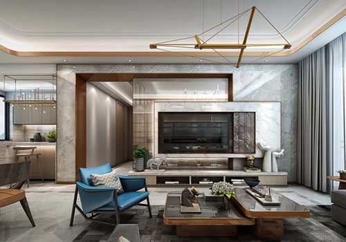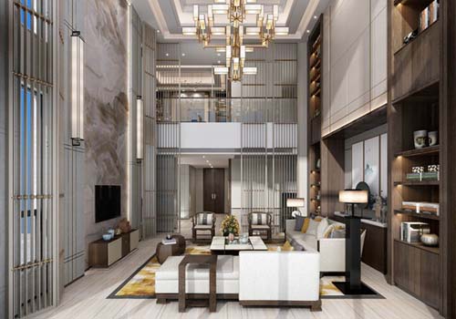 銷售中心設計包括接待區(qū)、大堂、VIP室、茶室、簽約室等,樣板房設計包括觀影室、餐廳等。
